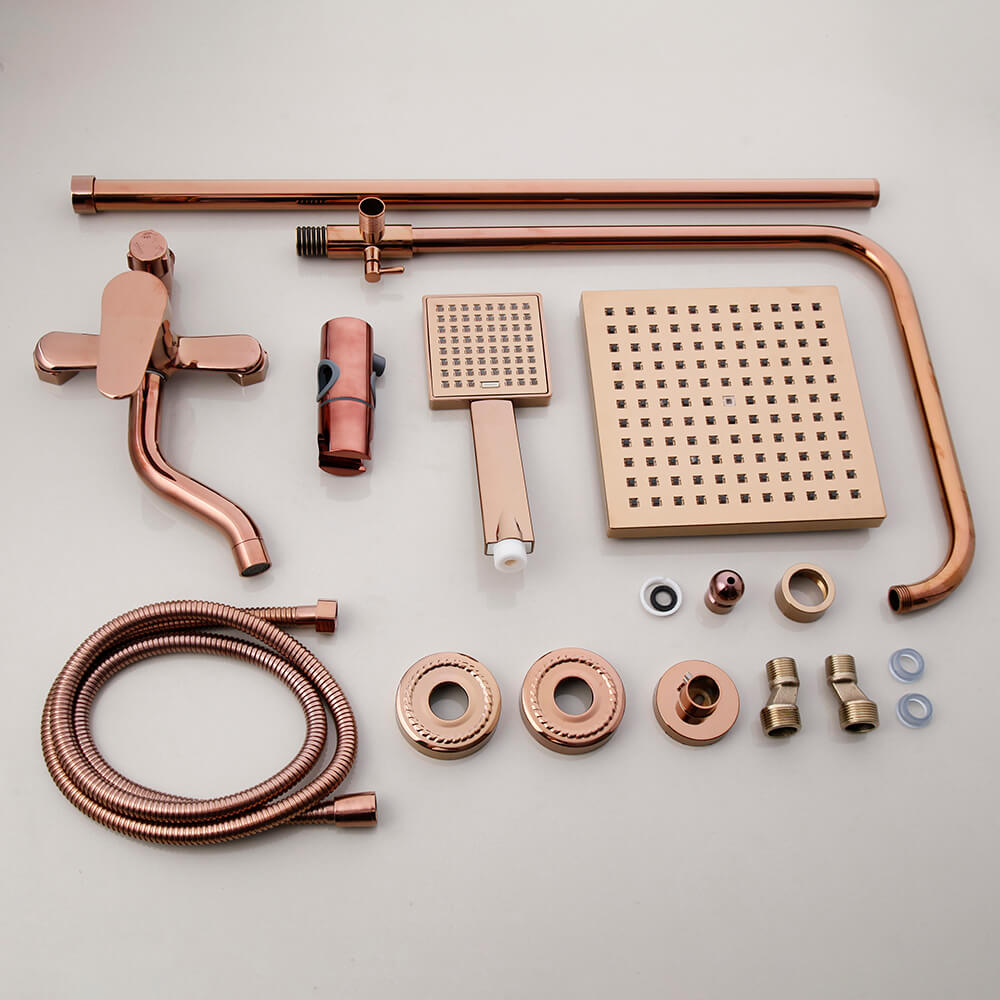 - Materiais de Alta Qualidade: Feita de materiais triplos de alta resistência, nosso chuveiro evita deformações e corrosões. Além disso, a superfície em ouro rosa é resistente ao desgaste e fácil de limpar.