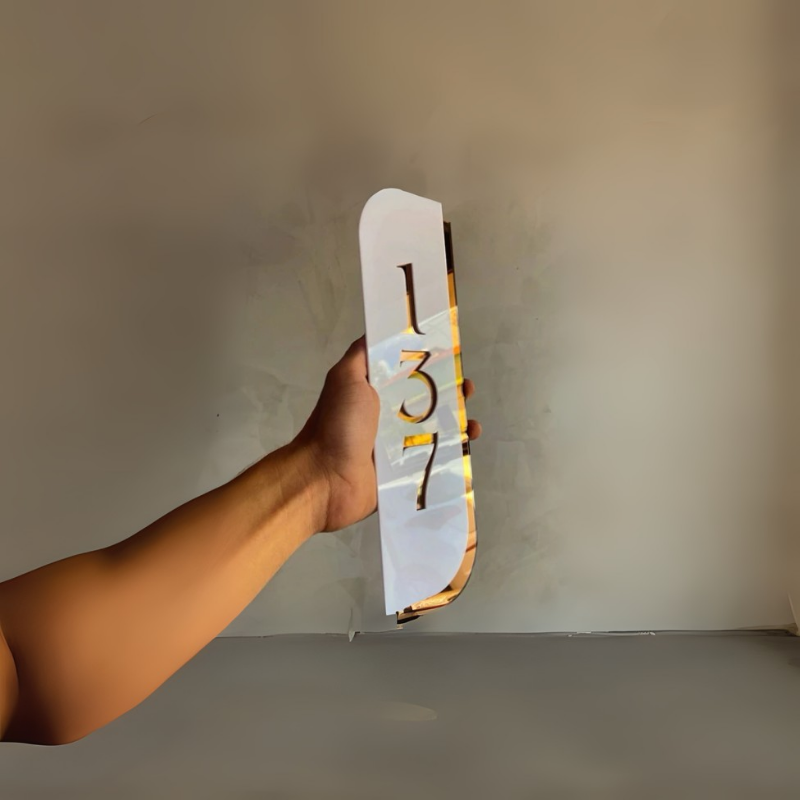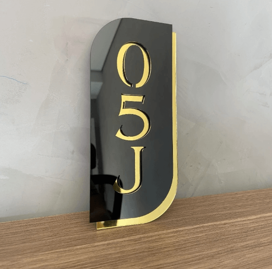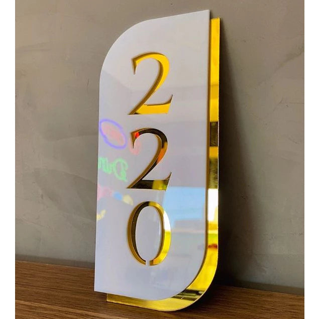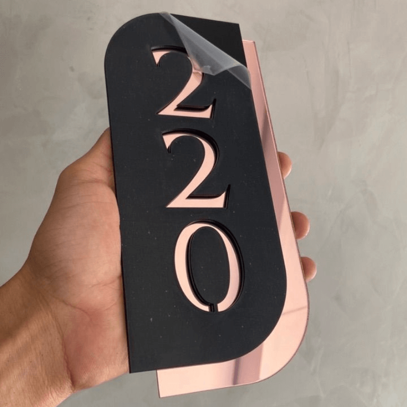 Visual Sofisticado – O acrílico espelhado realça o número com profundidade e brilho único.
