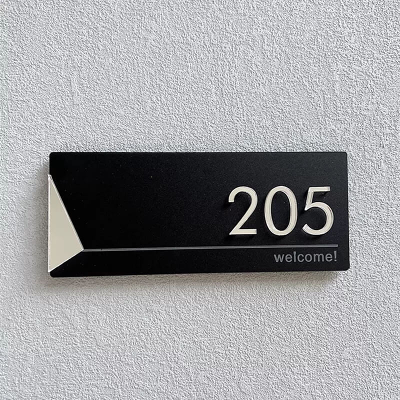 - Design Moderno: A placa apresenta um design contemporâneo que se adapta a qualquer ambiente. O número da porta e o endereço são personalizados de acordo com suas preferências.