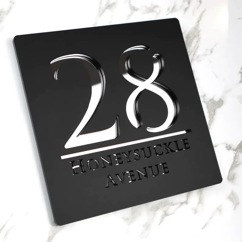 - Efeito 3D: Os números e o nome da rua são em 3D, criando um efeito visual atraente e sofisticado.