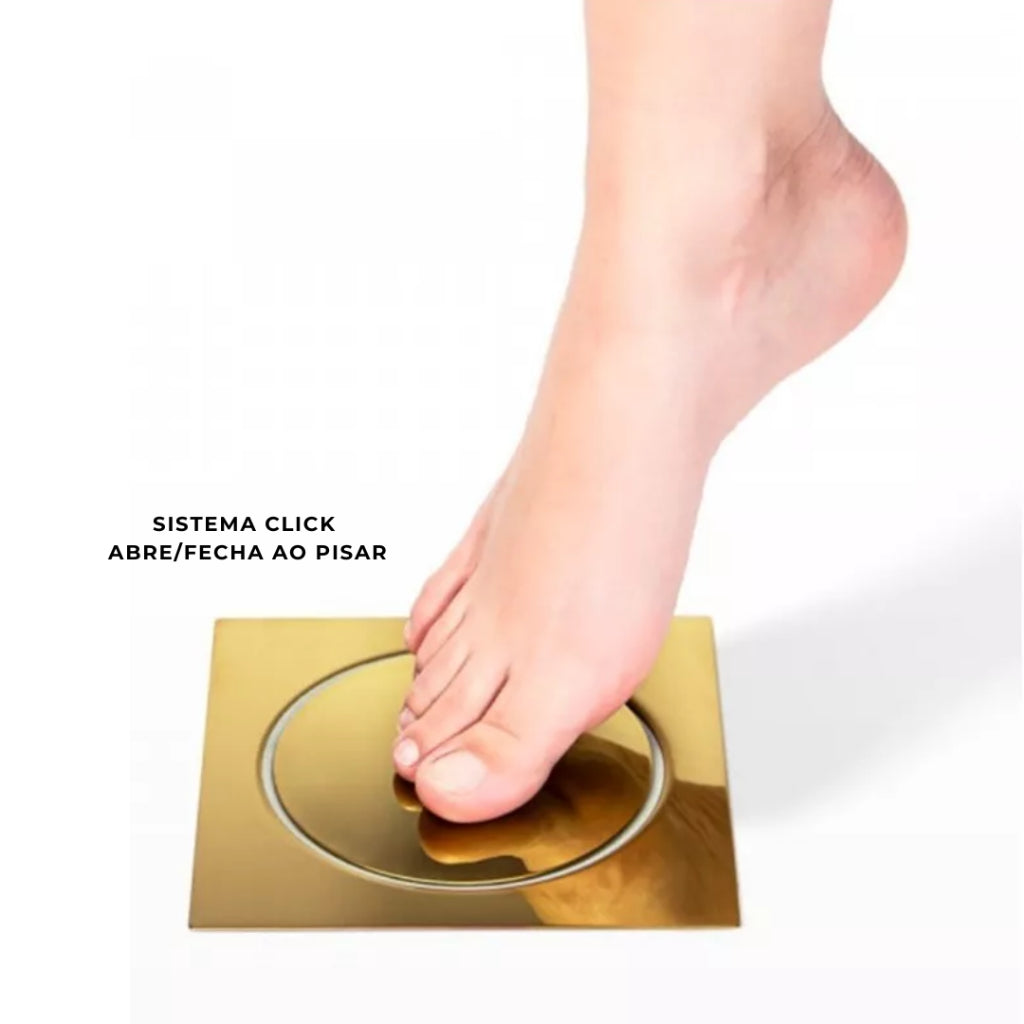 Invista em qualidade e beleza com o Ralo Click Inox Dourado e transforme seu banheiro em um ambiente ainda mais sofisticado e agradável!