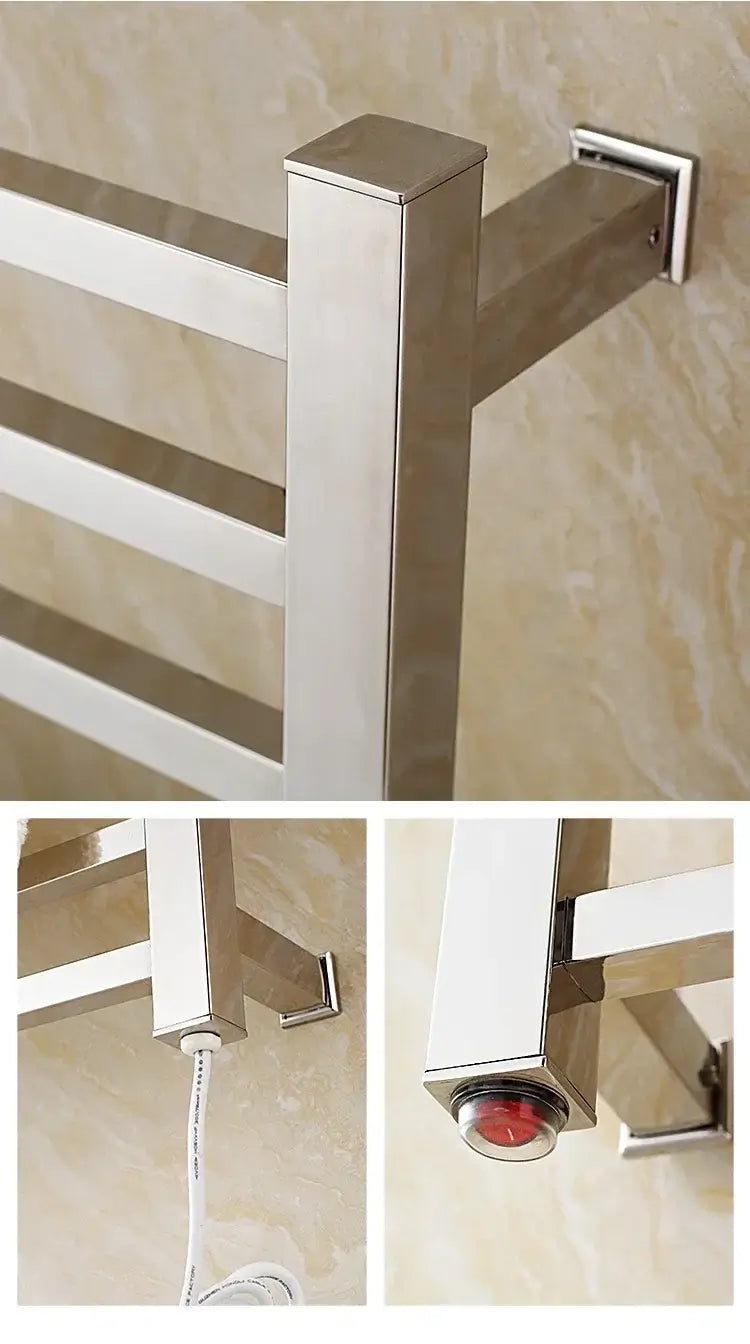- Temperatura constante: O toalheiro possui um termostato ajustável que permite definir a temperatura ideal para suas toalhas.