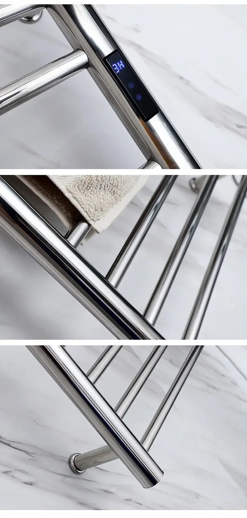 Temperatura constante: O toalheiro possui um termostato ajustável que permite definir a temperatura ideal para suas toalhas.