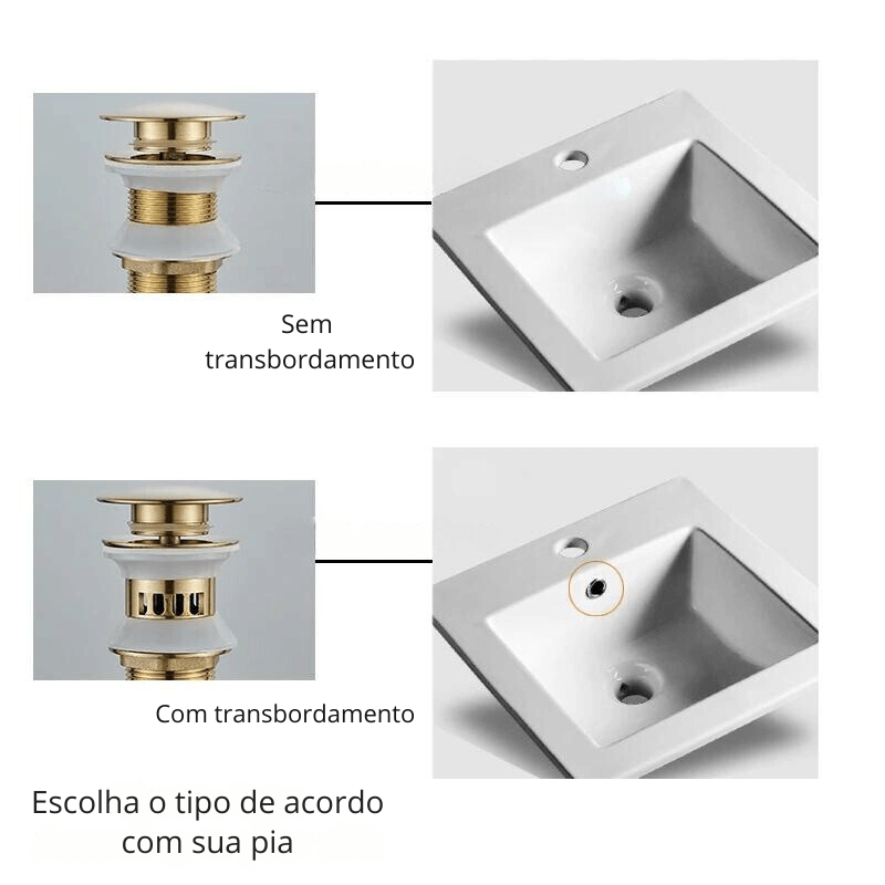 Destaque o seu banheiro com a nossa elegante válvula de pia pop-up! Este acessório funcional e sofisticado é perfeito para adicionar um toque de luxo ao seu lavatório. Aqui estão os detalhes: